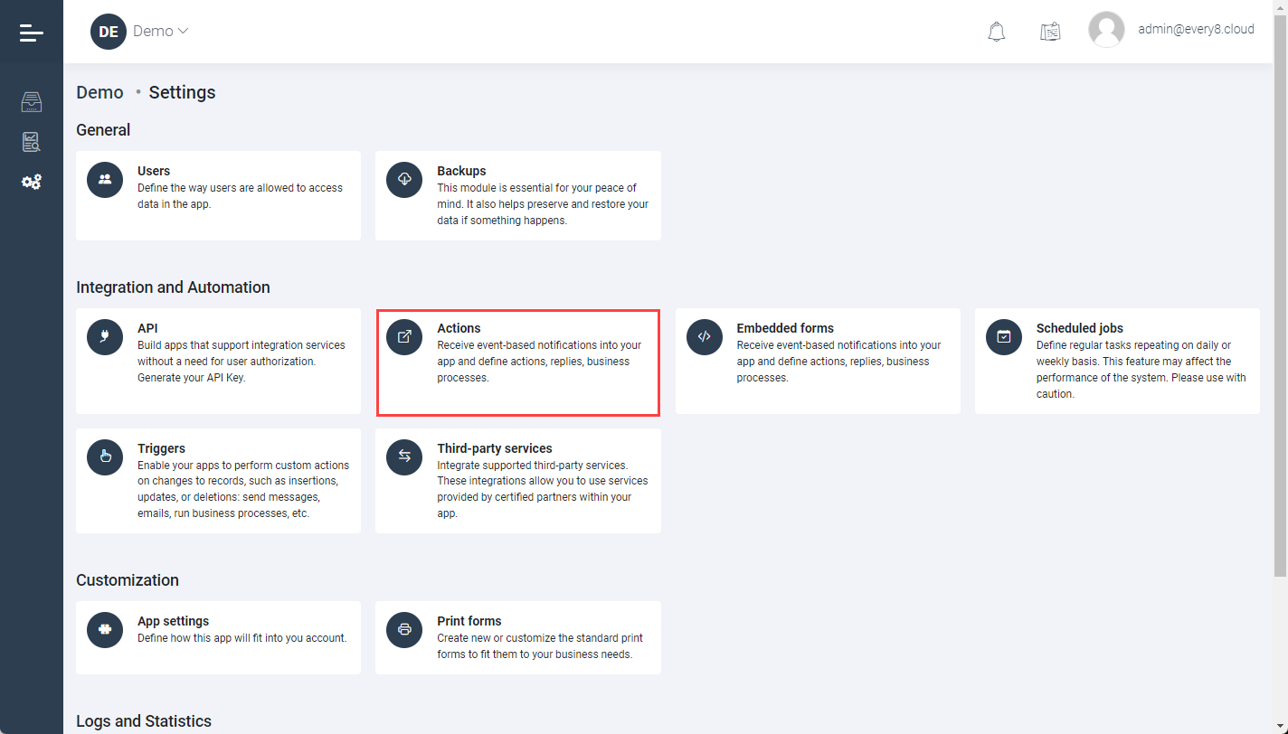 First off, it's important to understand what Actions are. Actions are metadata objects with their own unique address. When you reach out to this address, a specific action is triggered, and a result is returned. This result could be a JSON object, a file, or even a redirection to another form or page. Actions, for example, are frequently used to automate often used functions, worth identifying as separate elements in an application. A perfect illustration is the automatic generation of a PDF file before sending it to a client.
