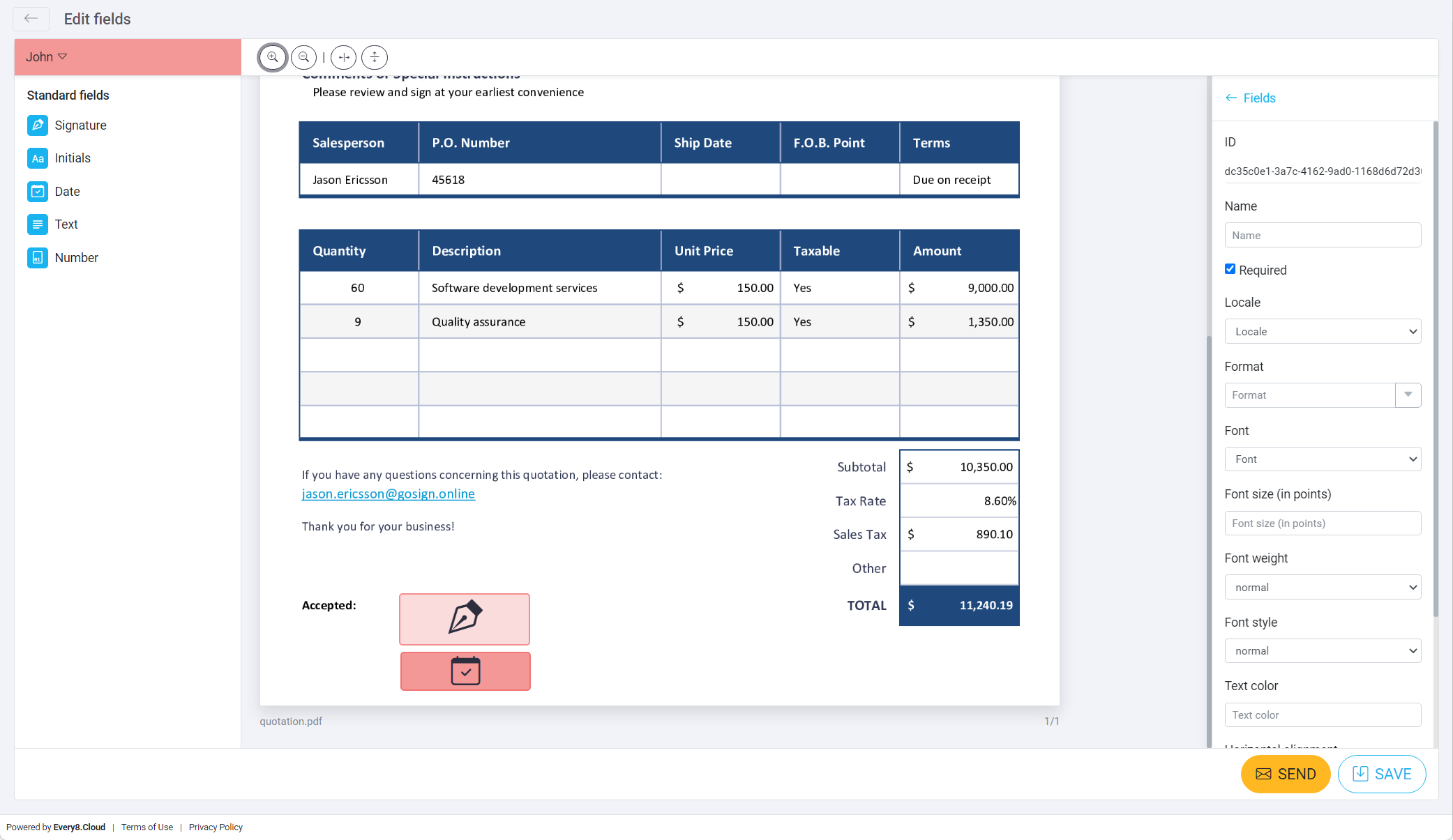 Some field types come with additional parameters, allowing you to customize the signing experience.
